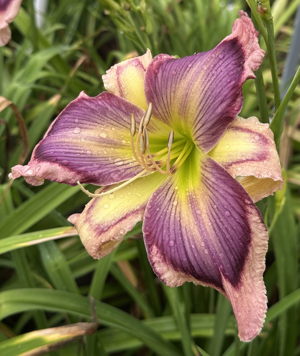 lavender pink huge blue purple ez, green throat w/starbrst pattern