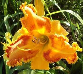 Red yellow bitone with a red halo and spiny edge. Named for our #1 grandson who is now 26.