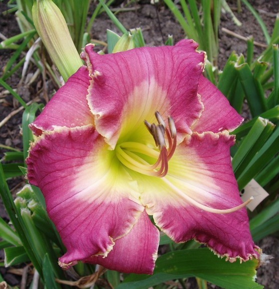 Named for another Granddaughter, PAPIO HANNAH JANAE is a bold rose with a loopy ruffle crimped in gold with a pink water mark and a green throat.