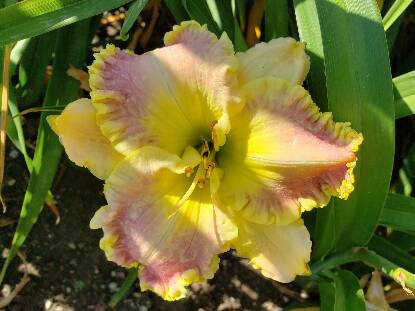 lavender bicolor lavender watermark, yellowgrren edge, green throat