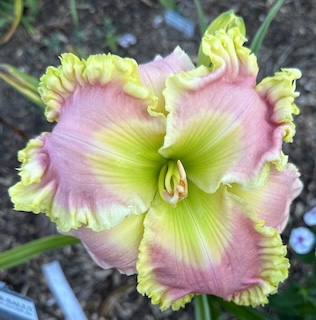 light pink large green eye ruffled yellow green edge